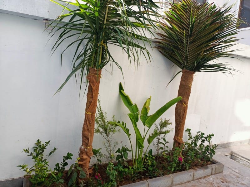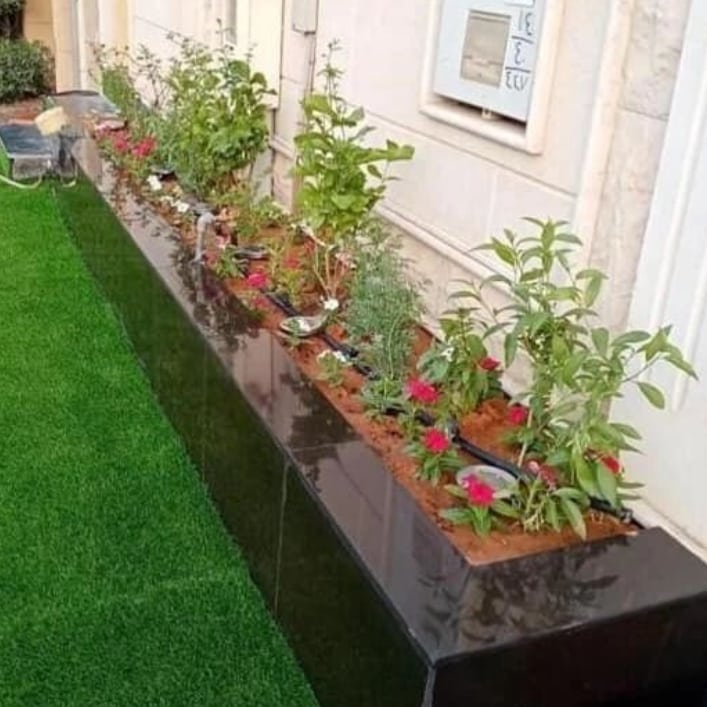 مع العمل على تصميم شبكة ري كاملة (عادى – اتوماتيك) والعمل على تصميم الديكورات الزراعية والحجرية ( التيل الصناعي – شلالات ونوافير – اضاءة الحدائق ) مع امكانية رش المنازل بالمبيدات الحشرية وتلقيح النخيل ورش التمر من الغبير